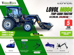 TANNERTRACK - LOVOL TB-3 75HP Cabin, Synchromesh Gearbox 4WD Tractor with 4in1 LoaderPremium Ad$41,990Pakenham, VICContact DealerDetails