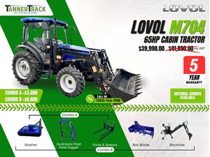 TANNERTRACK - LOVOL TB-3 65HP Cabin, Synchromesh Gearbox 4WD Tractor with 4in1 Loader$39,990Pakenham, VICContact DealerDetails